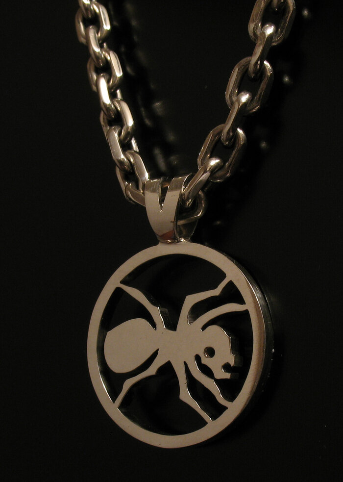 И снова здравствуйте. Выписка завтра, поэтому сегодня выполняю обещание и расскажу как меня расстроил рок-н-ролл. Началом стало первое что я решил сделать помимо цепочек и это конечно было то с чем смог помочь лобзик) Единственное что сделано для себя, до сих пор вместе и ни в чём не раскаиваемся)): Нашлись те кому понравилось и среди них были и девушки. И однажды попросили на Д.Р. рок группы что-то типа солдатского жетона но для девушки и размером поменьше стандартного. Девушка пела рок, пела активно и это должно было стать частью образа. (Гороскоп -скорпион, на барабане тоже, задача ясна). Знакомый гравёр сказал делай пластину давай рисунок за час нарисую. Ок. Когда всё было готово гравёр ушёл в космос на пару недель)) Д.Р. уже завтра и пришлось снова браться за лобзик. Но результат оказался хорош и понравился нашей рок звезде: И через некоторое время мне доверили придумать и сделать браслет с названием группы. И чтобы не быстро стёрлось (вот оно мне надо было прям ппц как))). Ну ок.