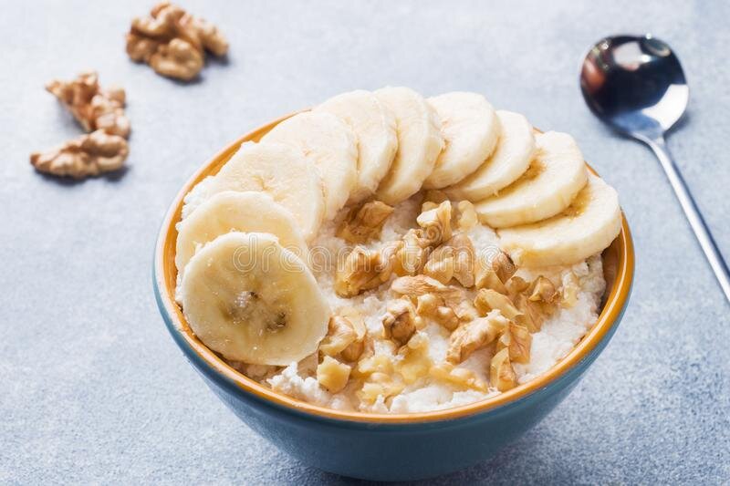 Хочу поделиться простой идеей для завтрака. Получается очень вкусно и быстро!! Нам понадобится : банан-1 шт. Творог - 150 грамм. Сметана - 20 грамм. Орешки(по вкусу) - 3 грамма. 1. Первым делом добавляем творог в ёмкость. 2. К творогу добавляем сметану и начинаем перемешивать. Нужно всё очень хорошо перемешать. 3. Теперь настала очередь банана! Моем, снимаем кожуру и режем банан на маленькие дольки. 4. Добавляем банан к творогу и сверху украшаем орешками. Наш завтрак готов! Приятного аппетита))