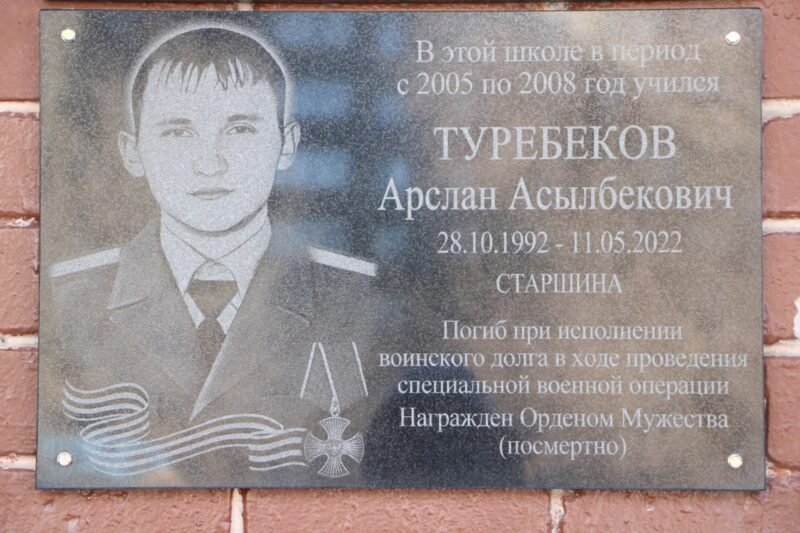 Уроженец села Карабутак Оренбургской области погиб выполняя боевое задание в ходе специальной военной операции. Мемориальная доска с именем выпускника была установлена на стене школы № 25 Орска накануне, 15 марта, сообщили в администрации города. В церемонии открытия мемориала приняли участие школьники и учителя, военком Орска, представители администрации, родные и близкие Арслана. Право открыть мемориальную доску представили постовцам школы. Военный оркестр исполнил гимн России. Героя почтили минутой молчания и оружейным салютом. Арслан Туребеков родился в селе Карабутак. После переезда в Орск учился в школе № 25. Педагоги вспоминают его, как жизнерадостного парня, активного участника общественной жизни класса. После школы Арслан учился в лицее № 52, где получил профессию машиниста — крановщика. Отслужив срочную службу он подписал контракт и стал военным. Старшина, командир танка танкового батальона Арслан Туребеков погиб в ходе спецоперации на Украине. Указом Президента России Владим