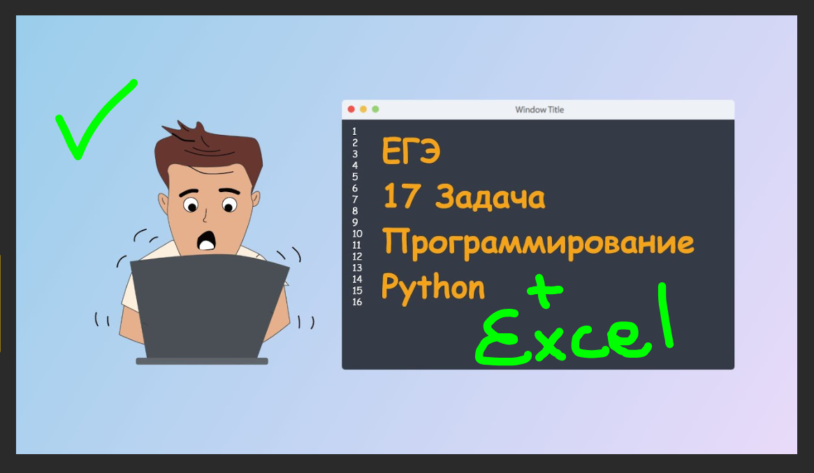 Задачи эти обычно программируют, но есть те, которые моментально просчитываются в электронных таблицах. Вот о таких и речь. Они обычно связаны с "одним проходом массива данных". Демоверсия 2024 _________________________________________________ Красивая задача Джобса № 7429 здесь, смотрите разбор Красивая задача Минака, смотрите: Демоверсию 2023 давайте посмотрим. Сразу же 2 способа. Если непонятно, смотрите видео ниже, они по нарастающей идут) ______________________ Вот №1, уровень несложный, для начала пойдет. Отличная задача ЕГЭ по информатике №17, которую чаще программируют. Но мы с грацией льва решим ее в Excel за 5 минут. № 5071, автор А. Брейк с сайта К.Ю. Полякова. Вот еще одна задача, чуть поинтереснее. Условие простое, привожу ниже: Хотя вот решение с использованием программирования. Тоже просто ведь? Задача с апробации ЕГЭ по информатике 10 марта 2023 №17 (или смотрите kompege №6752). Формулы: