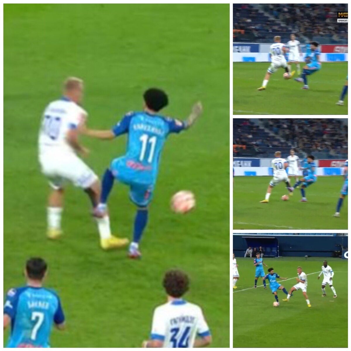 После вчерашней кубковой игры между Зенитом и Динамо хочется сказать только одно: Газпром уверенно ведёт наш футбол на самое дно!!! Такого судейского беспредела я не помню давно. То, что вчера сделал судья Кукуляк - это даже не предательство по отношению к самой игре и к миллионам болельщиков, а самый настоящий повод подать на него в суд! Как можно было не поставить пенальти за фол Клаудиньо на Тюкавине? Давайте посмотрим на фотографии: