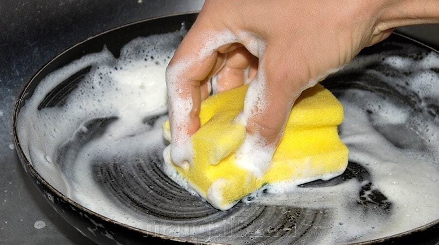 Несколько простых правил, которые подойдут не только для чугунной сковороды, но и для жаровни, саджа. Одним словом, для любой чугунной посуды 1. Перед первым использованием изделие необходимо тщательно вымыть горячей водой с моющим средством, пользуясь при этом губкой или неметаллической щёткой. Затем вытереть насухо. 2. Прокалите посуду с солью (в течение 10-20 минут), помешивая при этом соль.