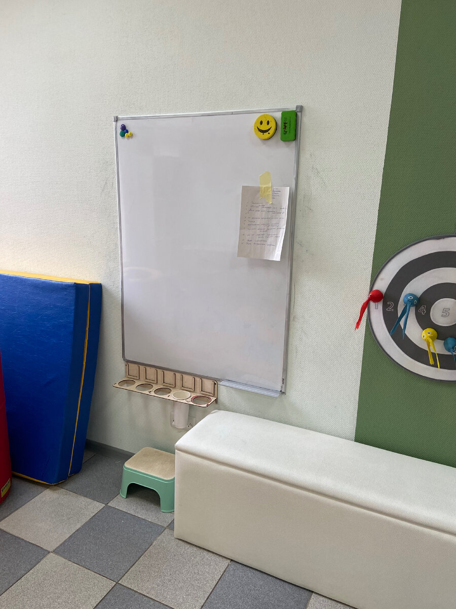 Как выглядит кабинет нейропсихолога? 🟡Первая зона - планирования. В начале каждого занятия мы с ребятами планируем какие упражнения нужно сделать (обязательно планируем игру) ✨ Бывает ребёнку нужен отдых между упражнениями и мы обязательно добавим его в свой план ✅ Далее по ходу занятия ребёнок отмечает сделанные упражнения. А в конце занятия мы вместе смотрим и выбираем какое задание было самым сложным (где потрудился) и задание которые больше всего понравилось ☺️ 🟢Зона баланса. В этой зоне лежат не только балансиры, но и весь крупный инвентарь. На стеллаже лежат предметы для разных упражнений, для меня важно что бы ребёнок мог брать все самостоятельно и убирать потом на место. В зависимости от возраста на разных полках разные предметы 👌 🟡Основная зона - ковёр нейропсихолог способен провести занятия в целом без всего 😅 но вот пространство, место для упражнений - это крайне важно! Пространства хватает что бы заниматься в мини группе - до 3 человек 👌 🟢 Зона письменных упражнений.