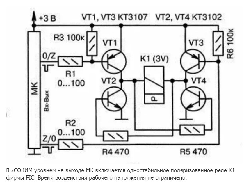 Для школьного проекта мне потребовалось подключить к контроллеру с микропрограммой распознавания цвета поляризованное реле, переключаемое импульсами в два стабильных состояния. Поляризо́ванное реле́ — электромагнитное реле, в котором состояние коммутируемых контактов зависит от направления протекания тока в обмотке его электромагнита. Его еще называют бистабильным реле, так как оно имеет два устойчивых состояния. Нашел у себя в запасах такую штуку. Когда-то делал один проект, где планировал использовать это реле. Его размер меньше обычной сим карты. Между ножками 2,5 миллиметра. Для управления таким реле мне посоветовали использовать мостовую транзисторную схему на комплиментарных парах транзисторов КТ3102 и КТ3107 это самые простые маломощные транзисторы рассчитаны на напряжение всего 50 вольт. В своих ранних проектах я, по совету старших, всегда ставил к катушке реле диод чтобы не испортился транзистор. Когда я спросил у электриков и радиолюбителей: "Куда поставить в этой схеме диод?