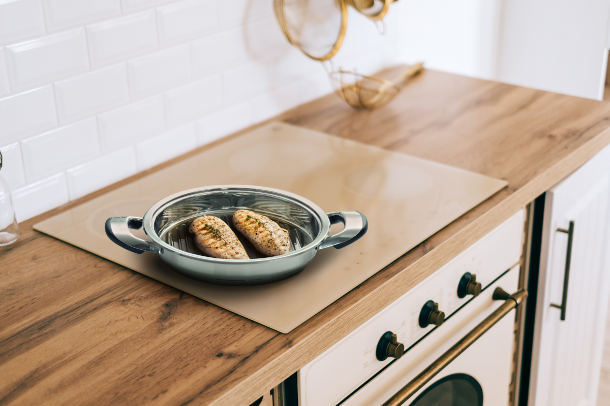 Толстостенное дно посуды аккумулирует тепло и позволяет пище «доходить», томиться как в печи, уже после снятия с конфорки, или извлечения из духового шкафа.
