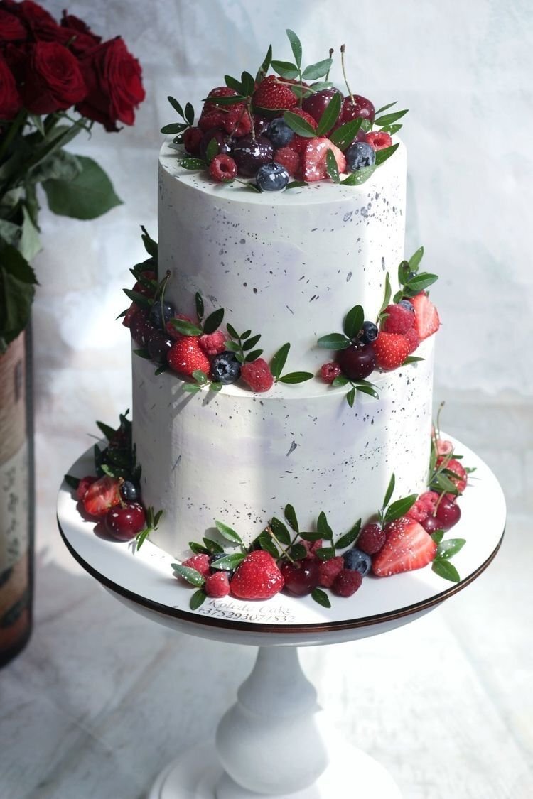 Завершает свадебный банкет - торт. Поверьте этого красавчика ждут все без исключения, даже если была превосходная закуска и сытное горячее, кусочек десерта с удовольствием попробуют многие. Свадебный торт является не только десертом, но и украшением свадебного торжества. Важно уделить внимание внешнему виду, торт обязан быть безупречным, красивым и вписываться в общую картину свадьбы. Сейчас можно заказать торт абсолютно разного размера, цвета и формы. Но как известно, самое интересное и вкусное внутри. Начинке следует уделить особое внимание, фантазируйте, подключайте свои вкусовые предпочтения, а главное придерживайтесь правила: ваша свадьба - ваш торт. Выбирайте на свой вкус, торт просто обязан нравится жениху и невесте, но и про гостей забывать не нужно. Чтобы вам было проще сделать выбор: 10 вариантов свадебных тортов Ягодный - шифоновый бисквит, ягодный соус, свежие ягоды, домашняя карамель, сливочный крем чиз. Чернично-лимонный - нежный лимонный бисквит, черничный соус, черничны