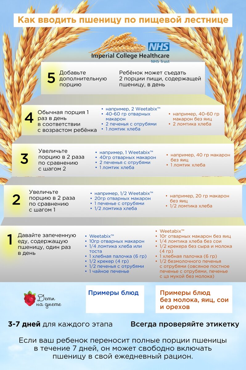Лестница по введению глютена. Я знаю, что вы ее давно ждали. Как и другие лестницы, она не подходит при анафилаксии и других сильных реакциях в прошлом. Разрешение должен дать врач, в идеале при уже отрицательных анализах. Прочитайте сначала текст⬇️, а потом листайте карусель. Этой схемы до сегодня не было в СНГ. И вот ваш аллерголог сказал заветное – начинайте вводить потихоньку глютен. ⠀ Что делать? Для начала я все же рекомендую дать ребенку на пробу продукт, где есть следы глютена (например, обычную овсяную кашу – ½ чл вместо безглютеновой овсянки). Увеличивайте порции постепенно, в своем темпе. ⠀ Данные лестницы идеально подходят для тех, у кого был исключен глютен только по анализам, были гастро проявления или легкие симптомы, стоял диагноз - непереносимость глютена. Схема не подходит для людей с целиакией!!!!!!! Есть данные, что 2/3 детей с аллергией на пшеницу в относительно молодом возрасте (подростковый период) перерастут аллергию. ⠀ Если у ребенка была истинная аллергия