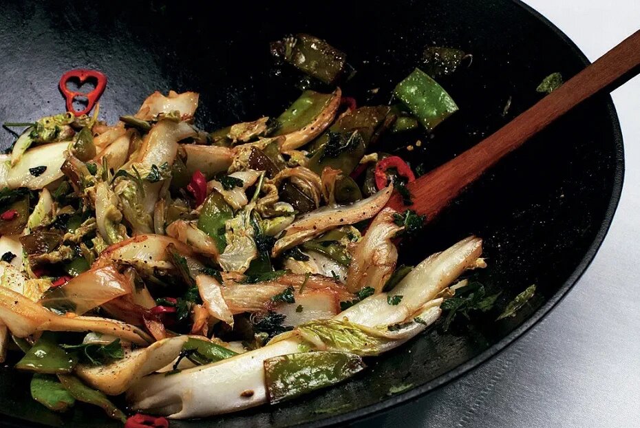 Перец чили 1 штука 1.Раскалить вок, влить в него кунжутное масло, потом соевый соус с уксусом. 2.Добавить нарезанный зеленый горошек, жарить его тридцать секунд, потом добавить нарезанную лапшой пекинскую капусту и жарить еще минуту. 3.По истечении этого времени добавить мяту, нарезанный колечками перец чили, перемешать. Выключить огонь. Накрыть крышкой. Дать постоять минуту и подавать к столу. Любите читать Дзен «Еды»? Расскажите свое мнение о материале в комментариях и ставьте свои лайки!