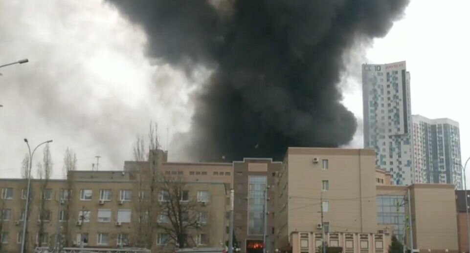 Пожарные перекрыли дорогу в районе горящего здания погранслужбы ФСБ в Ростове-на-Дону