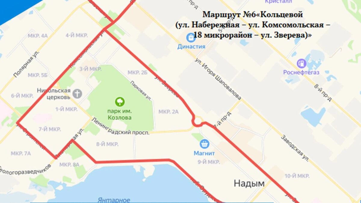 Движение транспорта в районе пересечения с улицей Зверева временно ограничено в Надыме. Это связано с аварией на инженерных сетях тепловодоснабжения на Полярной улице. В администрации Надымского района сообщили, что из-за ремонта движение пассажирского транспорта по маршруту №6 «Кольцевой» будет изменено. Остановочные пункты в прямом направлении: улица Рыжкова — Газпромбанк — 9 микрорайон — Набережная — Средняя общеобразовательная школа №3 — Поликлиника — Дом культуры «Победа» — улица Кедровая — Микрорайон 18 — улица Зверева — Надымские строители — Северный гостиный двор — Школа искусств №1 — 11 микрорайон. Администрация Надымского района Ранее мы писали, что в Ноябрьске отменили два популярных автобусных маршрута. Самые важные и оперативные новости — в нашем телеграм-канале «Ямал-Медиа».