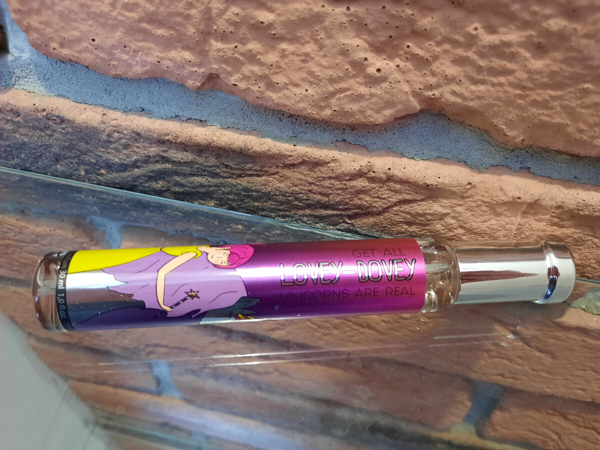Добрый день, дорогие читатели! В последнее время я очень часто захожу в магазин "Улыбка радуги" и в одно из таких посещений присмотрела себе вот такой миленький флакончик с парфюмом. Не знаю почему, но у меня сложилось мнение, что эта водичка тоже относится к линейке Ин100грамм, отзыва на которую у меня уже есть. Наверное, потому, что они находились рядом на полочке и имеют абсолютно одинаковые флакончики. Свою ошибку я осознала уже дома, когда стала внимательно изучать этикетку. Но о своей покупке я ни разу не пожалела! Итак... Парфюмированная вода Лорен-Косметик Lovey-Dovey Unicorns Are Real Дизайн этикетки очень яркий и красочный, руки к нему просто сами непроизвольно потянулись. Но если присмотреться, то видно, что он такой детский и несколько инфантильный: феечка, единорог, девчачий розовый фон... Взрослую аудиторию такая этикетка может отвернуть от покупки, зато маленьким девочкам аромат точно придется по душе. Сам флакончик очень простенький, но зато удобный: в нем нет торчащих