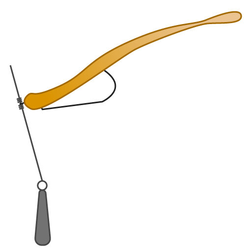 В цикле статей «Виды спиннинговых оснасток» я делюсь своим опытом и помогаю изучить новые варианты спиннинговой ловли. В этой статье расскажу про дроп шот. Описание Дроп шот это разнесенная спиннинговая джиговая оснастка, которая отличается от других тем, что крючок находится выше грузила. Оснастка дроп шот хорошо подходит как для хищной, так и для мирной рыбы. Применяется в основном на перекатах, бровках, местах с сильно заросшим или закоряженным дном. Дроп шот эффективно показывает себя как летом, так и зимой. Монтаж Для сборки вам понадобятся следующие компоненты: Для начала отрежьте леску длиной примерно 1 м. После этого отмерьте 30 см от конца на котором будете закреплять груз. Именно здесь и нужно привязать крючок. Делается это следующим образом. Сложите леску пополам и проденьте в ушко крючка. Начните завязывать обыкновенный узел, но пока не затягивайте его. В свободную петлю просуньте крючок, как показано на рисунке. Теперь можно затягивать, предварительно смочив леску, чтобы