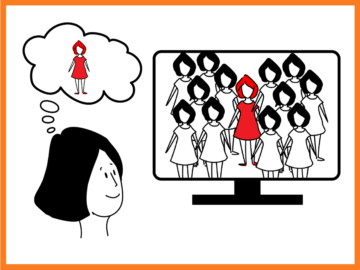 Ты слушаешь или смотришь на женщину в красном? Взгляд падает на объекты, которые выделяются на фоне других. Если добавить что-то необычное или сделать контрастным то, что должен заметить пользователь — это привлечёт внимание.
