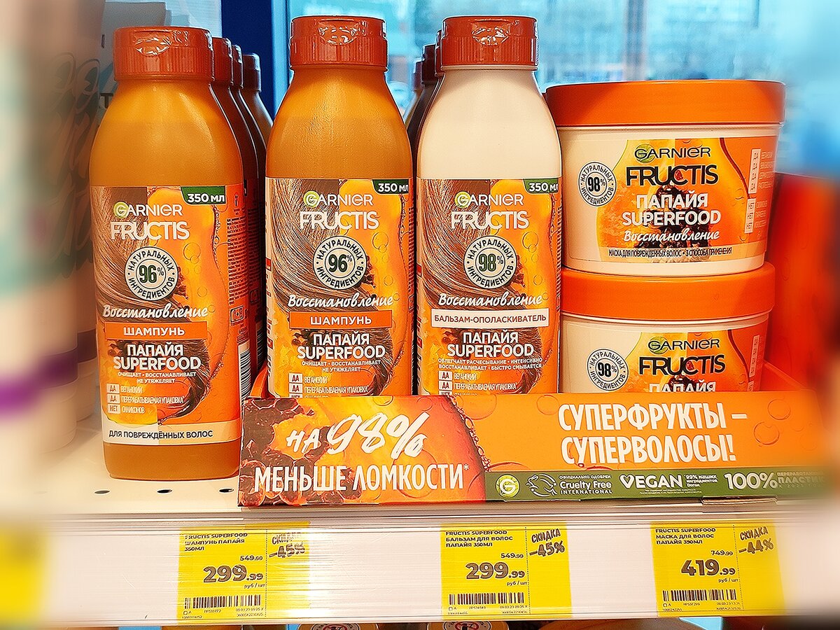 1) Шампунь Garnier Fructis, папайя superfood.