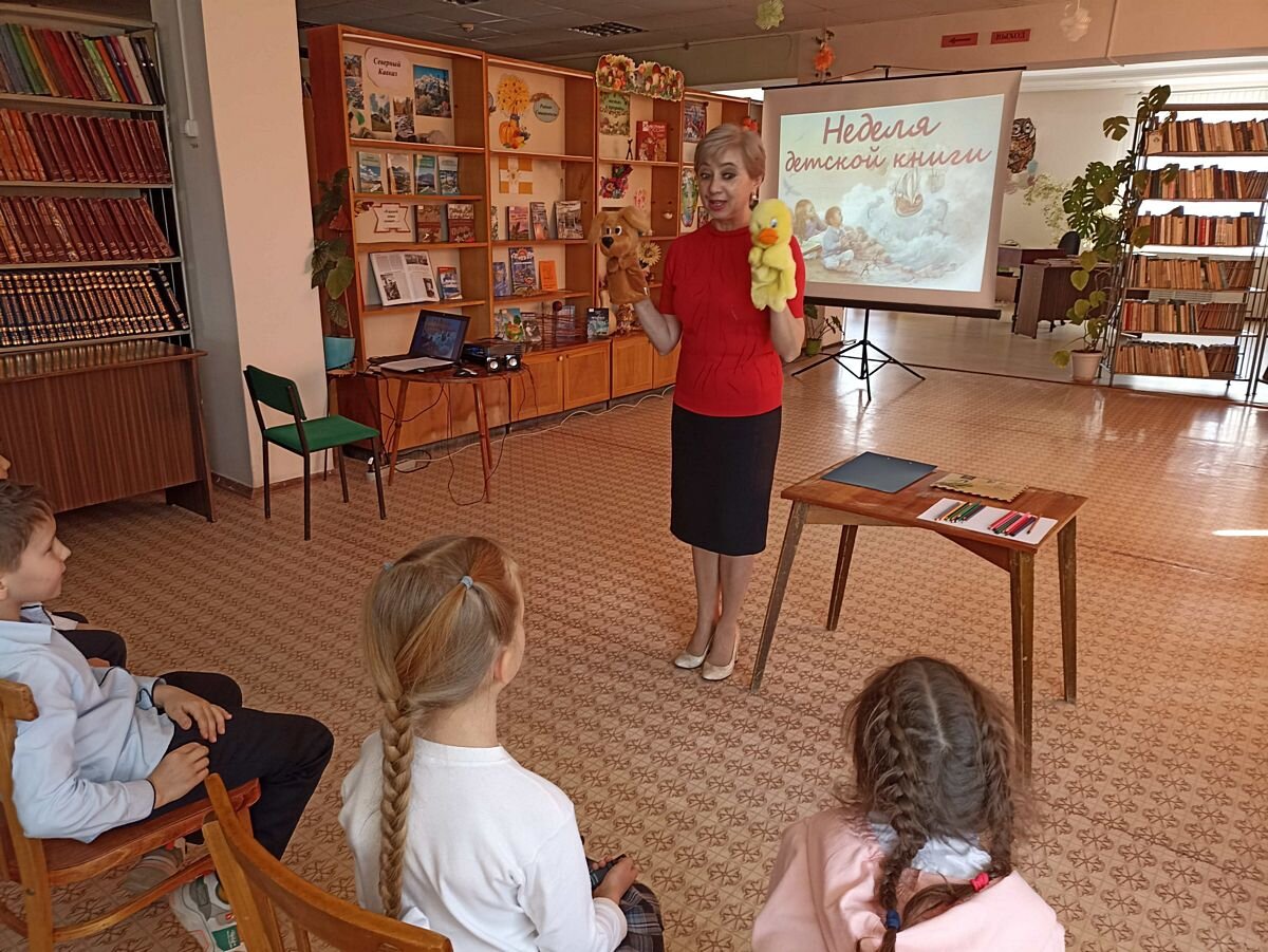 Неделя детской книги – это полезные, интересные и познавательные встречи детей с библиотекой, с книгой, а также праздник всех читающих ребят, праздник детства, веселых приключений, новых литературных открытий. В преддверии Недели детской и юношеской книги участники мероприятия МБОУ СОШ № 5 были приглашены библиотекой-филиалом № 5 на веселое путешествие в литературный портал «Эй, спешите вы сюда! Неделя книги в гости к вам пришла». Ребята узнали об истории праздника, о том, что у книги, как и у человека, есть именины и когда они были впервые организованы. Помощниками мероприятия стали перчаточные куклы щенок и утенок из книг Н. Носова «Бобик в гостях у Барбоса» и В. Сутеева «Цыпленок и утенок». С помощью литературного портала учащиеся странствовали по космосу, опускались на дно океана, оказывались во временах, когда на земле жили динозавры. Они участвовали в познавательных и веселых конкурсах «Автора, автора», «Сказки водят хоровод», а в подвижной игре «Цветик семицветик» совершили эксп