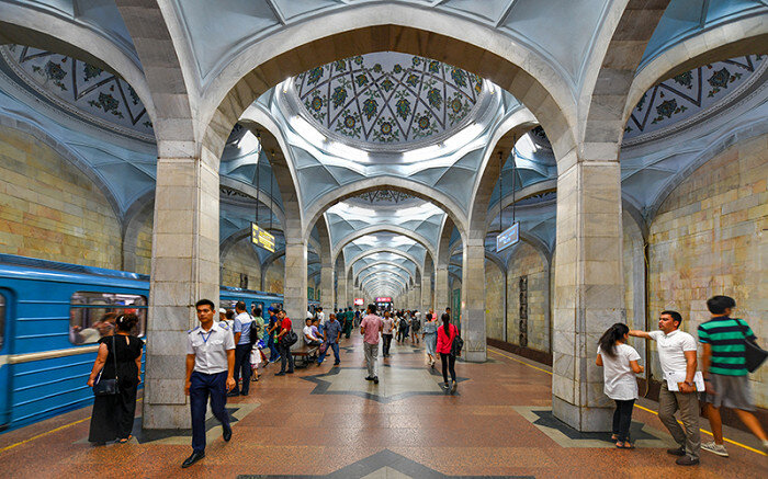 5. Ташкентский метрополитен — первый в Средней Азии и один из красивейших в мире: станции облицованы мрамором или гранитом, украшены цветной мозаикой и изящными светильниками. Благодаря продуманной системе вентиляции в метро прохладно даже в сильную жару.