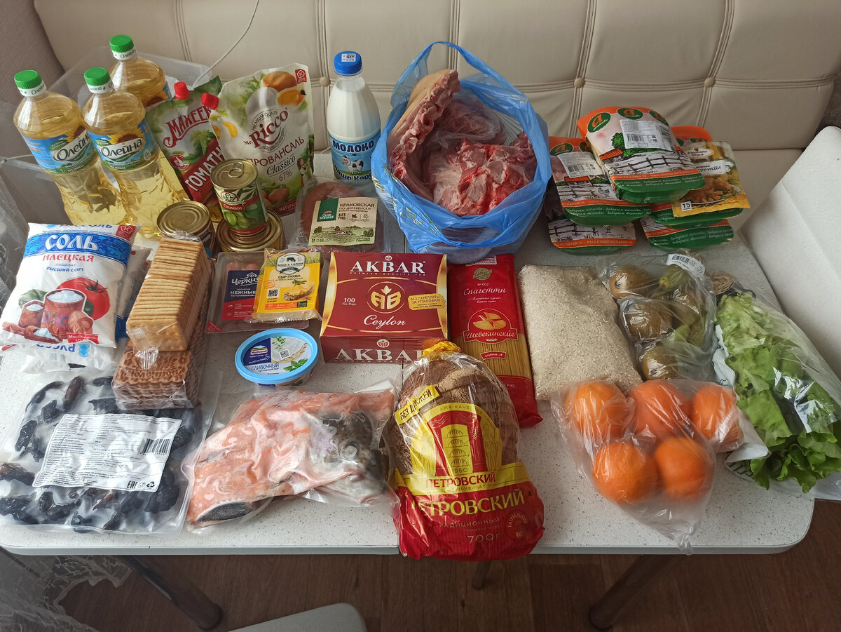 Вообще, здесь большая часть продуктов куплена на долгий период, это 6кг свинины, курица 5 лотков бедер и голеней, чай, соль, масло, бакалея, немного морепродуктов и ежедневные товары в виде молока, хлеба, фруктов, овощей, сыра, печенья и колбас. Раз в 2-3 дня мы покупаем хлеб, фрукты, овощи, молоко. Это то, что есть всегда в нашем холодильнике. По мере съедения, докупаем всегда сыр, колбасные изделия(любит муж и старший сын🤔), кефирчик, яйца. Крупы и макароны тоже всегда должны быть в разнообразии в наличии дома. А что всегда есть в вашем холодильнике? Без чего вы не проживете?