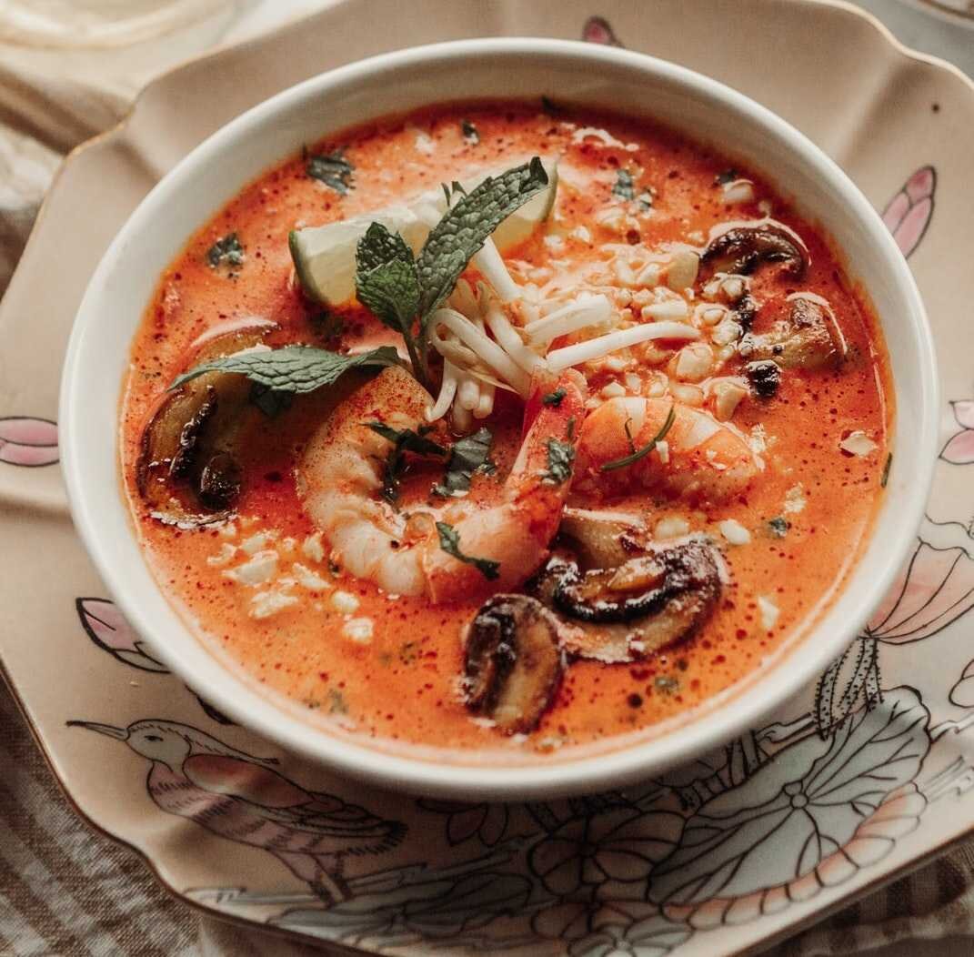 Любителям Тайской кухни посвящается. Шедевр тайского кулинарного искусства — суп с огромным количеством креветок, грибов, помидоров, лимонником, колганом и листьями лайма. Все это вариться в кокосовом молоке и подается в двух вариантах: с кокосовым кремом - суп Том Ям Кунг Нам Кон или без него - Том Ям Кунг Нам Сай. Вторая версия чуть более кислая и легкая. Том Ям действительно, объединяет множество вкусов: соленый, кислый, острый и сладкий в одном блюде. Это истинный фаворит тайской кухни известный во всем мире. Ингредиенты для супа Том Ям Бульон (Куриный.Для лучшего куриного навара использовать всю курицу.) — 2 л Креветки (Тигровые или Королевские ) — 300 г Грибы (Шампиньоны) — 200 г Лайм — 1 шт Паста (Паста именно ТОМ ЯМ..Количество-примерное-по вкусу) — 2 ст. л. Молоко кокосовое (Количество-примерное..по вкусу) — 4 ст. л. Лимонная трава (Лемонграсс) — 4 шт Лист древесный (Каффир-Лайма) — 5 шт Имбирь ( а точнее Галангал(можно заменить на имбирь)) — 1 шт Кинза — 1 пуч. Помидор (Л