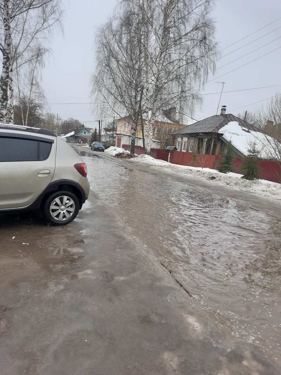 Второй день активно тает снег, в некоторых местах уже и не пройти. Вот такое море-океан каждый год разливается около нашей школы. Машины просто плывут, особо лихие рассекают по волнам и окатывают всех. Но хорошо, что таких немного, большинство всё же адекватные люди. Сегодня подъезжая к школе, попыталась заехать на этот бугорок, а там так скользко... и ничего у меня не получилось. Пришлось машину ставить чуть подальше. Иду, коллеге жалуюсь, что не смогла заехать, а она мне говорит: "У меня Максим пораньше заворачивать начал". Ну да, Максим мужик, а я -🐔. Вот двадцать третий год за рулём, а всё никак лихачить не научусь. Особенно теряюсь, когда сынок рядом сидит и начинает мне указывать. У него стаж меньше года, и это 🥚 начинает меня учить. Хотя надо признать, что ездит он хорошо и советы у него дельные. Так вот иной раз слушаю-слушаю его: "Ну и душнила ты, сынок!" Не обижается. Посмеёмся и дальше едем. А это перед входом в школу. Сегодня какая-то девчушка через забор лезла, хотя