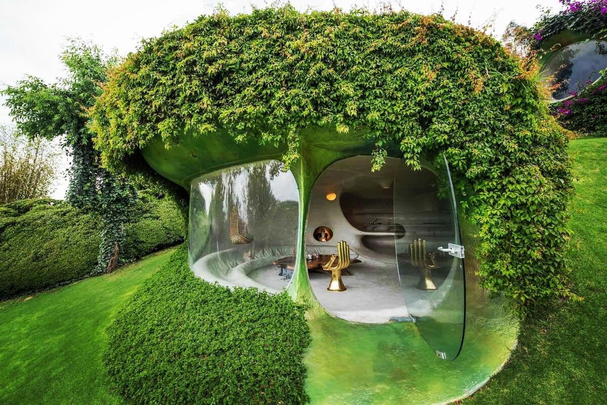 Органический дом, спроектированный известным мексиканским архитектором Хавьером Сеносиаином, расположен в Наукальпан-де-Хуарес, штат Мехико, Мексика. Идея проекта изначально была задумана и заимствована из скорлупы арахиса: два просторных овальных пространства с большим количеством света, соединенных низким, узким, тускло освещенным проходом.