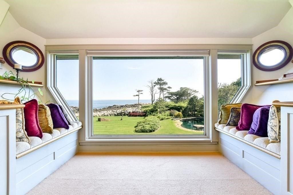Сегодня мы вам расскажем про один очаровательный дом, который находится на берегу океана. Общая площадь дома составляет 966 квадратных метра. В доме пять спален и шесть ванных комнат. Участок окружён раскидистыми лужайками и пышными многолетними садами. Сам дом построен в 1927 году, но со временем он подвергался реставрации. На участке есть историческая главная резиденция, дом у бассейна, гостевой коттедж и гараж, отделанные антикварными породами дерева, гранитом, добытым в местных карьерах, и другими отделками из натурального камня. Дом у океана с всесезонным крытым бассейном предлагает дополнительные жилые и развлекательные помещения, а также спа-салон и паровую баню на 8 человек. Этот уединенный, самодостаточный дом коренится в красоте и силе. Он расположен в одной из самых восточных точек суши в континентальной части США, но при этом доступен для крупных городских центров по суше, воздуху и морю. Стены в гостиной выполнены в белых цветах, а на полу находится мягкий ковролин сиренев