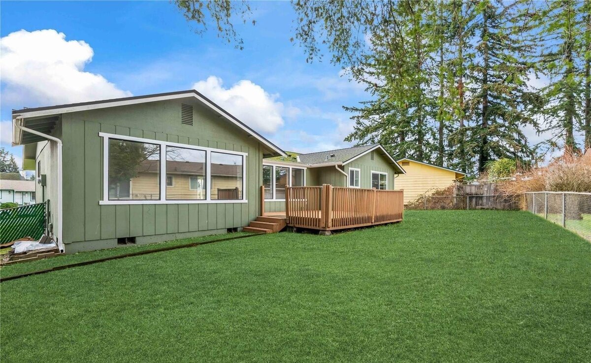 Сегодня мы вам расскажем ещё про один красивый дом который находится в США, Вашингтон. Этот дом построили в далеком 1968 году, но благодаря своевременному ремонту здания, дом выглядит как новый. В нем находится три спальни и две ванные комнаты, а также кухня гостиная. Общая площадь дома составляет сто сорок восемь квадратных метров, а общая площадь всего участка семьсот восемь квадратных метров. Дом просторный и очень уютный. Недавно в этом доме хозяева сделали ремонт, и полностью изменили дизайн и интерьер помещения. В гостиной установили новый электрический камин и сделали открытую планировку в столовую. В этом доме также есть задняя комната для дополнительного жилого пространства, игровой площадки и развлечения. Основные комнаты ранее были темного цвета, сейчас там белые стены и светлая мебель. Окна установили в современном стиле вместо деревянных, которые были установлены ранее во время строительства дома. На кухне установили новый холодильник, плиту, раковину, шкафы и гранитные ст
