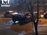 ДТП с участием четырёх иномарок на Невского. Около 21:40 красная "Мазда" двигалась в сторону центра, перед поворотом в неё врезался чёрный "Джили". От столкновения японец отлетел и зацепил "Порше" и "Мерседес" — находившиеся внутри красного авто водитель и пассажир госпитализированы. Обложка @ Скриншот видео
