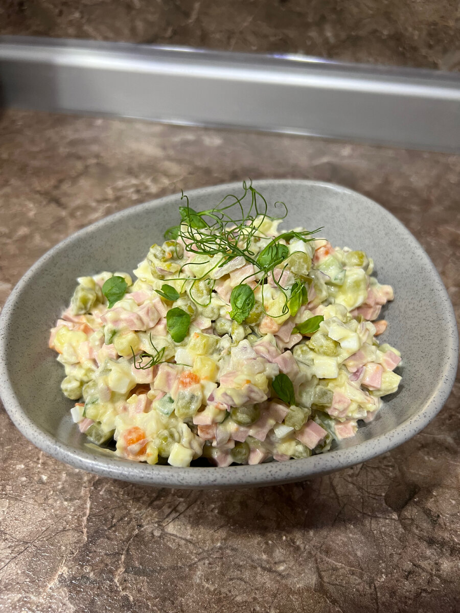 На сегодняшний день ни один праздник не обходится без нашего любимого домашнего оливье. Так давайте же его приготовим😋 1️⃣ Для начала нам нужно подготовить все ингредиенты (отварить яйца, запечь картошку и морковку, можно и отварить, но я предпочитаю в микроволновой печи). Нам понадобятся: 2️⃣ Нарезаем все мелким кубиком (приблизительно размером с горошек), перемешиваем. 3️⃣ Накладываем, заправляем майонезом и НАСЛАЖДАЕМСЯ 🤤🤤🥰 Все готово. Приятного аппетита😘