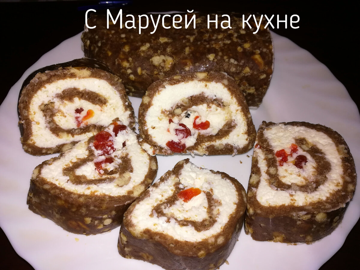 Шоколадный рулет с творожной начинкой, без выпечки.