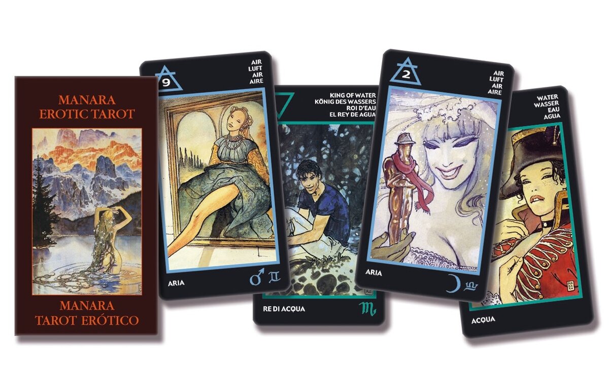 Манара. История. Особенности колоды. Таро Манара (или Эротическое Таро) создано художником из Италии Мило Манара совсем недавно (в 2000 году). Несмотря на такой молодой возраст, эта колода успела завоевать звание прекрасного мантического инструмента, помогающего исследовать и раскрывать психологические тонкости души человека, а также разбираться в проблемах, которые возникают или могут возникнуть в отношениях. Карты отличаются особенной, очень откровенной графикой, к которой сложилось достаточно неоднозначное отношение: одни тарологи считают, что колода проявляет максимальный эротизм, а другие говорят о её откровенной вульгарности. Как бы там ни было, внешняя раскрепощённость персонажей на арканах скрывает очень глубокий смысл. Прибегнув к гаданию на Таро Манара, вы сможете заглянуть вглубь своих самых скрытных уголков души, поэтому перед предсказанием стоит запастись смелостью чтобы не получить неожиданного ответа на вопрос который может привести вас в ступор. Прежде чем принимать