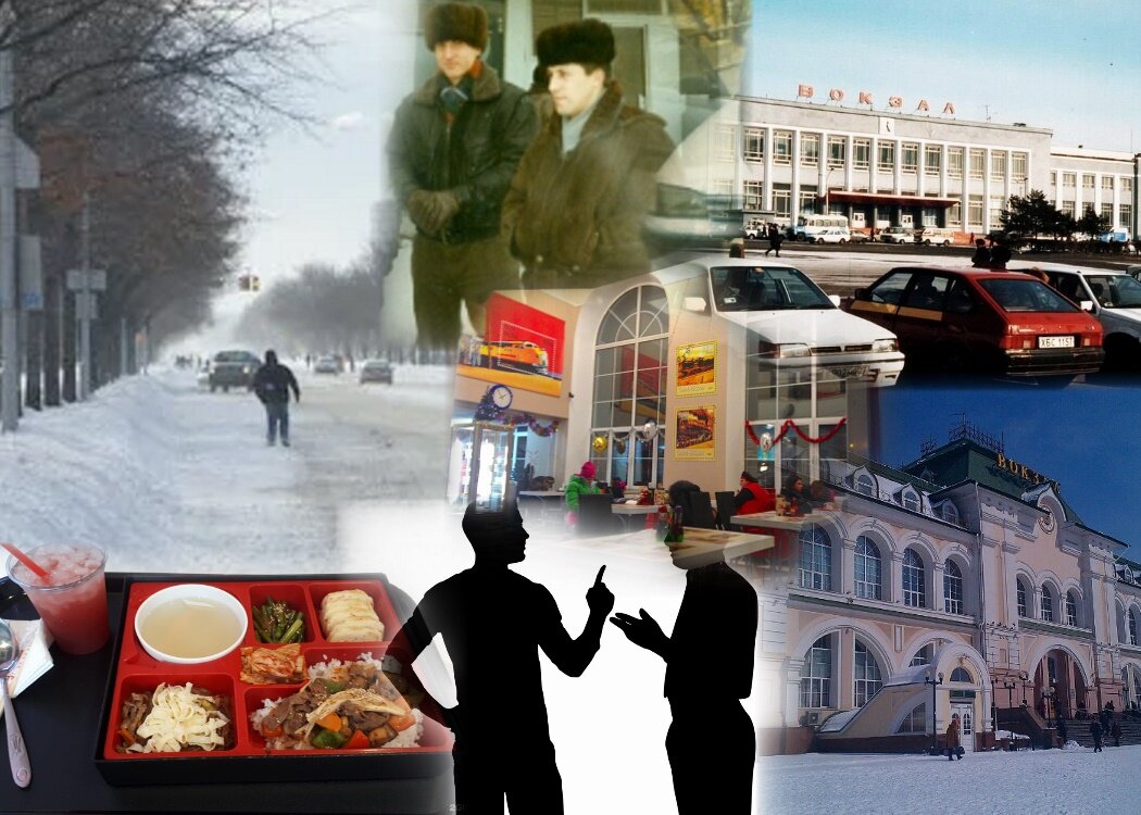 Вышли мы из здания вокзала, по привокзальной площади ехали два трактора с мётлами позади.