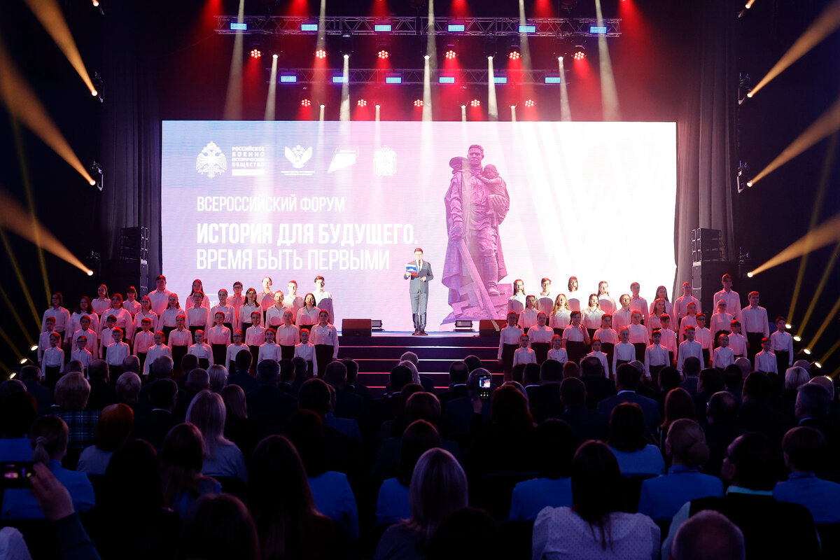 В Кузбассе прошел первый день Всероссийского форума «История для будущего. Время быть первыми». Мероприятие, посвященное подвигу сибиряков в годы Великой Отечественной войны, объединило более ста тысяч человек в очном и онлайн форматах. Торжественное открытие форума прошло в спортивном комплексе «Кузбасс-Арена». Среди участников: помощник Президента России и председатель Российского военно-исторического общества Владимир Мединский, заместитель полномочного представителя Президента в СФО Александр Орехов, Губернатор Кузбасса Сергей Цивилев, председатель Парламента Кузбасса Алексей Зеленин и депутаты. На мероприятии присутствовали главы Городов трудовой доблести СФО, представители региональных отделений РВИО и администрации города Горловка, школьники, студенты и педагоги, руководители отделений «Юнармии» и поисковых отрядов, а также спортсмены. Владимир Мединский зачитал приветствие Президента России Владимира Путина участникам и гостям форума. Приветствие также направил министр прос