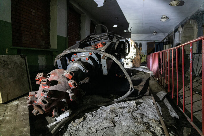 Кроме этого сохранилось несколько горных машин, два проходческих комбайна с телескопической стрелой и очистной комбайн. Состояние конечно не очень, но машины все еще выглядят внушительно.