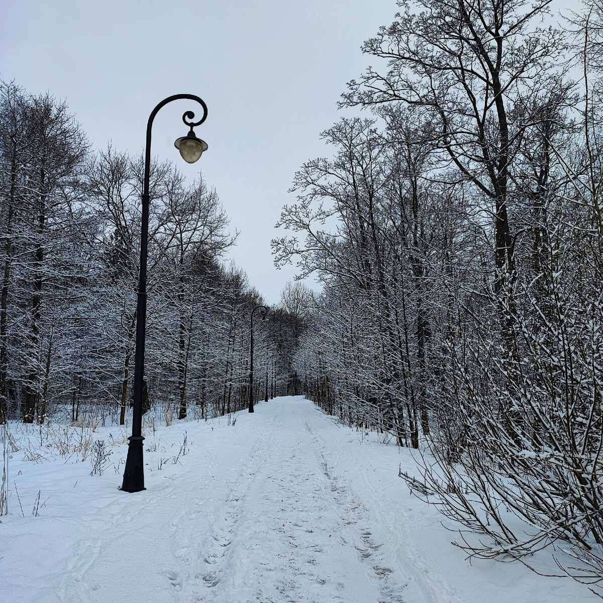 Зима еще не сдала своих позиций. Кругом снежные сугробы, снег облепил ветки деревьев и кустарников. В безлюдном парке пасмурно, ожидается очередной снегопад. Падают первые снежинки и морозят кожу. Пора уходить, но непреодолимая сила манит в глубину парка... Что там между деревьев? В парке тишина. Нарушает ее только отдаленный лай собаки. Сквозь деревья и сугробы виден мост, великолепный в своем одиночестве и заброшенности. Следы на снегу говорят о том, что люди здесь были и мы идем дальше. Вдруг, откуда ни возьмись, на нас с лаем бежит огромная овчарка! Хозяина рядом не видно. Неужели путь отрезан? Начинаем пятиться назад... Что ж, в глубине парка притаился еще один неприметный мостик, который практически утонул в снегу и лишь ограждения напоминают, что он здесь. Пробираемся сквозь сугробы и ветки. Создается впечатление, что сама природа противится нашему приходу и охраняет покой этого места. Естественно интерес разыгрывается еще больше. Наш путь лежит во дворец. Да, да, вдалеке уже ви