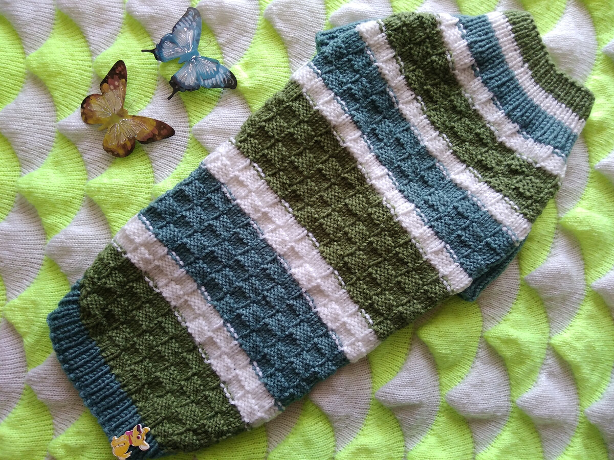 Добрый день, друзья! Сегодня хочу сделать обзор свитера для собак средних размеров. Данный свитер связан из пряжи турецкой фабрики ALIZE LANAGOLD CLASSIK (Ализе Ланаголд классик). Метраж данной пряжи 240 м/100 гр. Состав: 51% акрил, 49% шерсть. Цвета использованы белый (№55), лазурный (№386) и оливковый (№385). Спицы использовала №3. Не смотря на то, что в составе высокий процент содержания натуральной шерсти, свитер получился очень нежный и мягкий. В работе использовала несложный, но очень эффектный узор "Шахматка" (чередование 4 п. изн, 4 п. лиц с расстановкой в шахматном порядке). Для более комфортного ношения вывязан росток, благодаря которому свитер не будет собираться и морщиться в области спинки. Рукава вязала регланом сверху, где петли регланной линии связаны косичкой. А так же сделаны убавки в переходе от грудки к талии. Благодаря таким убавкам, свитер облегает талию и не пачкается на прогулке. Размеры данного свитера: Окружность шеи = 28-36 см. Объём груди = 48-58 см. Дл