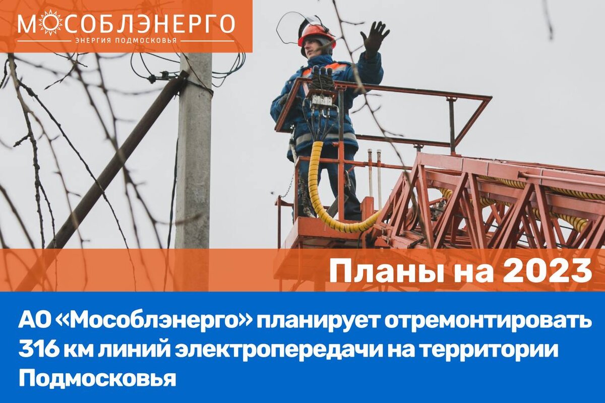 АО «Мособлэнерго» в 2023 году планирует отремонтировать 316 км линий электропередачи на территории Подмосковья. Работы будут проведены в рамках программы капитального ремонта, реализуемой в компании ежегодно.