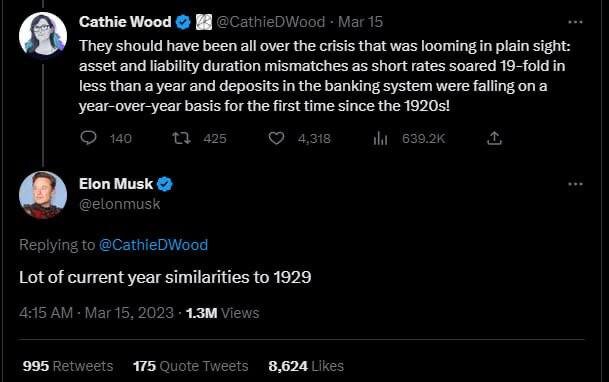 ✅ Основные новости на 17 марта: 🔺Курс доллара: 76,2 руб. 🔺Курс биткоина: 25.700$ 🔺Ночью BTC подрос на +5%, потянув альты за собой. Снова в тройку лидеров роста вошли: IMX, STX и CFX - рост на +10..12% за день. 🔺Рынок растет на фоне слухов о вливании ФРС 2 трл.$ в банковский сектор США. Также вчера, Tether напечатали еще +1 млрд. новых USDT. Сценарий движения BTC к 28к остаётся в силе.. 🔺Разработчики Ethereum заявили, что планируют запустить обновление “Шанхай” 12 апреля. Возможны манипуляции с курсом ETH: будьте внимательны. 🔺Команда Arbitrum анонсировала аирдроп токенов ARB. Первая раздача пройдет 23 марта - после чего (скорее всего) будет листинг монет на биржах. Ориентировочно, стартовая цена токена будет: 1.3-1.5$ 🔺Илон Маск намекает, что проблемы в экономике очень похожи на начало новой Великой депрессии как в 1929 году👇
