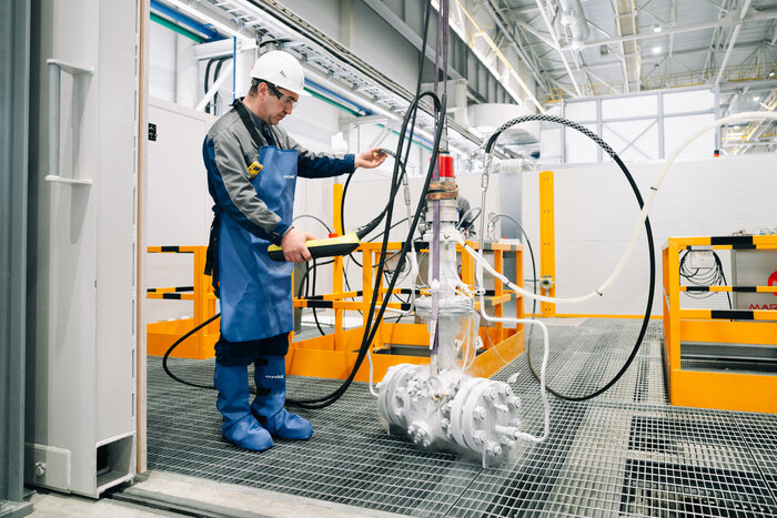 Испытание специальных шаровых кранов это отдельная песня. Есть стенды гидравлических испытаний, стенд газовых испытаний и стенд криогенных испытаний.