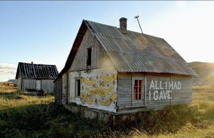 Некоторые граффити, нарисованные на старых домах, стали визитной карточкой Териберки. Многим они нравятся, но не все знают автора. Это работы норвежского художника, известным под псевдонимом Pøbel. Он старался через творчество привлечь внимание к проблемам северных поселений, считая, что рисуя картины на заброшенных домах, можно дать им новую ЖИЗНЬ. В 2015 году Pøbel был приглашен в Териберку, чтобы поделиться с местными жителями опытом арт проекта, который применили в Варде, Норвегия. Исторически Вардё и Териберка были связаны торговыми поморскими путями, но в 1960-х годах из-за кризиса в рыбной промышленности оба этих поселения пришли в упадок. Pøbel создал в Териберке 12 работ. На данный момент вы можете увидеть лишь малую часть от них. На остановке в Лодейном вас ждет рыбак, надпись «ALL I HAD I GAVE» на обветшалом доме, в заброшенной школе Белоснежка занимается уборкой, там же вы увидите фирменный знак Pøbel «Mute» и еще несколько рисунков. «家» («Дом») — это последняя работа Pøbel