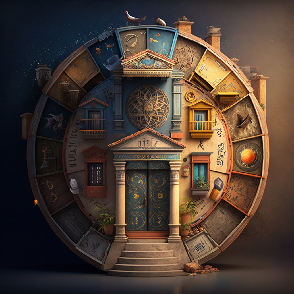Астрологические дома, дорогие мои астрологические путешественники, это немного похоже на волшебные комнаты в таинственном особняке. Каждая комната имеет свою уникальную атмосферу, и в них хранятся разнообразные сокровища и тайны. Исследуя эти комнаты, мы можем узнать много нового о себе, о том, что нас ждет и какими качествами мы обладаем. Теперь же, возьмем с собой фонарик любопытства, и отправимся в глубины астрологического особняка! 1-й дом, где все начинается, это входная дверь нашего особняка, с которой стартует наше путешествие по натальной карте. Он представляет нашу личность, внешность и самовосприятие – словно зеркало, в котором мы видим свое отражение. 2-й дом, словно сундук с сокровищами, символизирует наши материальные ценности, финансы и чувство безопасности. Здесь мы обнаруживаем, что у нас есть и что мы ценим больше всего в материальном мире. 3-й дом - это библиотека особняка, где хранятся знания и общение. Здесь мы изучаем свои умения, способности общения и отношения с