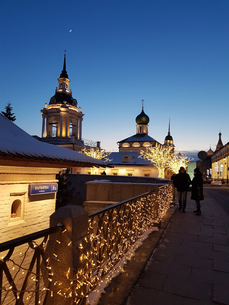 Эта улица довольно короткая - всего 550 м. Но зато какая она прекрасная! Да, это Варварка - одна из древнейших улиц Москвы, улица церквей и храмов, расположенная бок о бок с высокотехнологичным парком "Зарядье". Соседство, конечно, странное, но от этого общая картина не теряет своей привлекательности. Мне кажется, эту улицу незаслуженно обделяют своим вниманием туристы. Для большинства она - путь от метро "Китай-город" до Красной площади, "Зарядья" и обратно. А ведь каждый камень, каждый кирпич в кладке древних зданий - это целая история, которая, к сожалению, не всегда весёлая. Вот, к примеру, церковь Варвары Великомученицы. По преданию, Варвара жила на рубеже III-IV вв. н.э. в городе Илиаполе Финикийском (сейчас это город Баальбек в Ливане) Редкая красавица, единственная дочь аристократа-язычника, который мечтал выгодно выдать её замуж, поэтому заточил в башню, желая сберечь её для потенциального жениха. Глядя в окно, Варвара познавала жизнь, насколько это было возможно, наблю