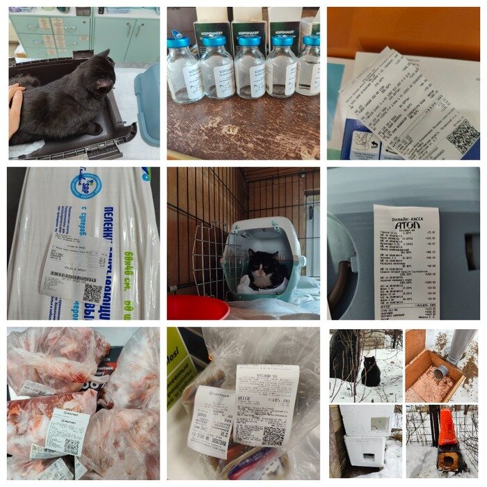 01.03.23. 700 Рублей – оплата стационара кошке в клинке 99 рублей - натуралка 345 рублей – влажный корм 540 рублей – пеленки. 02.03.23 475 Рублей – натуралка. 03.03.23 718 Рублей – натуралка 1191 рублей – препараты и шприцы. 06.03.23 5748 Рублей – кошколовки 6292 рублей – кошколовки 532 рублей – натуралка 679 рублей – куриные головы 667 рублей – натуралка. 07.03.23 940 Рублей – вольер 118 рублей – суповые наборы 524 рублей – куриные головы. 08.03.23 393 Рублей – натуралка. 10.03.23 853 Рубля – натуралка 668 рублей – натуралка 532 рублей – натуралка 307 рублей – сменный иглы 280 рублей – когтерез. 11.03.23 400 Рублей – натуралка 766 рублей – натуралка. 13.03.23 155 Рублей – натуралка 509 рублей – натуралка рублей. 14.03.23 4165 Рублей – санация и удаление двух зубов Бублику. 15.03.23 544 Рублей – натуралка. 16.03.23 10 900 Рублей – две банки КоронаКет. И стерилизация кошек (9 кошек) - Отчет по моей программе льготной/бесплатной стерилизации бездомных и домашних кошек (28 февраля - 17 ма