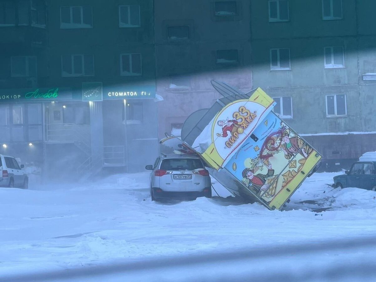 В Норильске штормовой ветер сбивает людей с ног и сносит крыши зданий.Порывы ветра достигают 33 м/с. В городе ввели режим повышенной готовности из-за сильной метели. Людей просят лишний раз не выходить на улицу