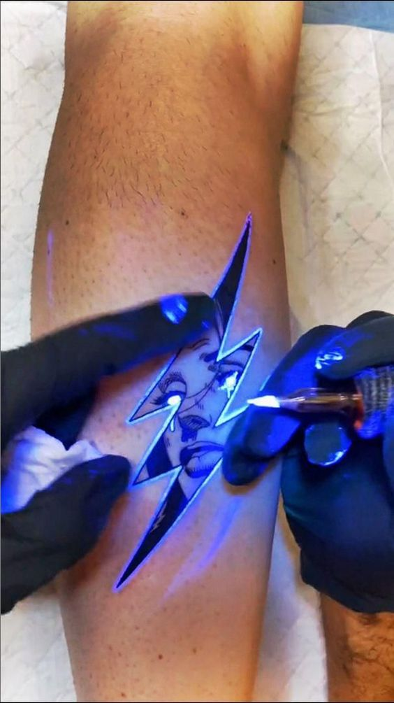 А также важно понимать, что если впоследствии вы решите перекрыть такую наколку любой другой на основе цветных чернил, результат получится не таким, как вы ожидаете. Изображение будет выглядеть менее насыщенным, а свечение исчезнет вовсе.