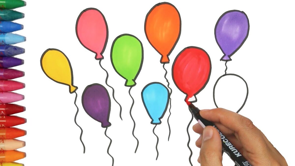 - Покажите, заранее нарисованные на листе разноцветные шары без ниточек.