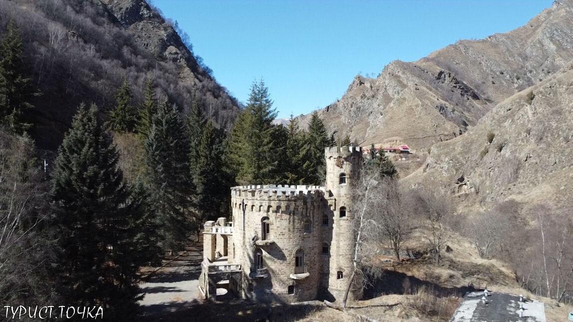 Все приезжающие в Долину Нарзанов обращают внимание на живописный замок. Его просто невозможно не заметить. Видно даже издалека.