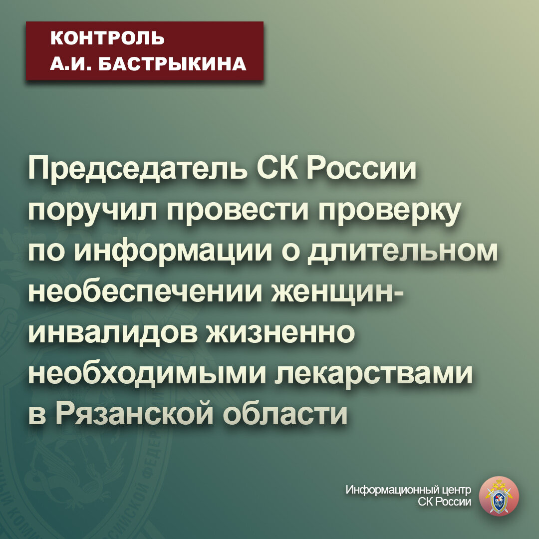 Председатель СК России поручил провести проверку по информации о длительном необеспечении женщин-инвалидов жизненно необходимыми лекарствами в Рязанской области