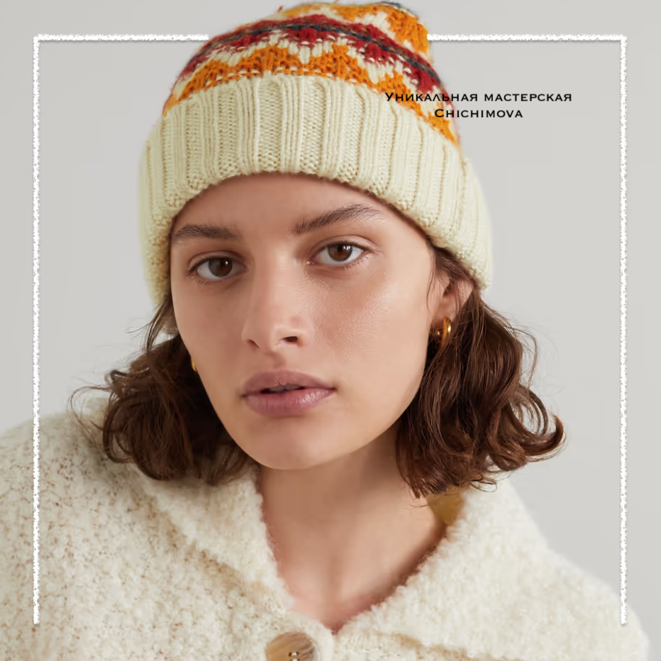 Привет! Меня зовут Дарья. Я автор блога «Уникальная мастерская Chichimova». Недавно я обратила внимание на то, что жаккард может быть очень разным. Я, конечно, Капитан Очевидность, но сейчас я объясню о чем идет речь. Есть изделия, в котором жаккард превалирует, забирает все внимание на себя. Это, конечно, его главная особенность. Но иногда хочется, чтобы кроме жаккарда была видна еще и сама вещь. Чтобы жаккард воспринимался органично, целой картиной. И я это поняла, когда листала фотографии бренда Loro Piana. Давайте вместе посмотрим на ненавязчивый жаккард. Кстати, он выполнен с использованием 4 цветов. И на мой взгляд изделия выглядят очень органично. Подпишитесь на канал! И каждый день читайте полезные и интересные статьи о вязании и рукоделии! Кашемировая шапка с помпонами и ромбами. Цена - 320,83 фунтов стерлингов / прибл. 29 726 руб. Шапка Loro Piana связана из кашемира, невероятно мягкого и теплоизолирующего. Она связана традиционным узором ромбами и украшен большим помпоном.