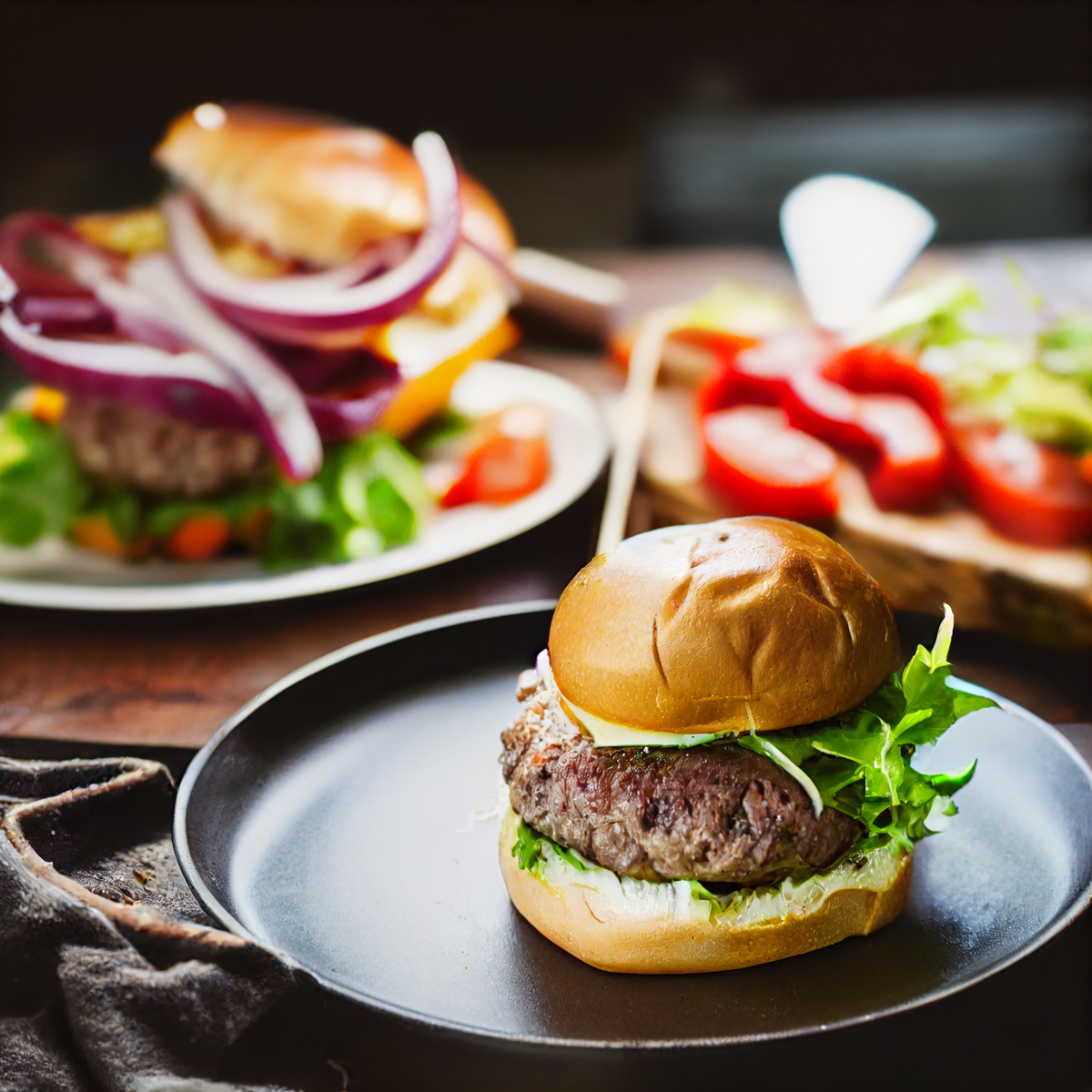 Ингредиенты: ·500 г говяжьего фарша ·1/2 чайной ложки соли ·1/4 чайной ложки черного перца ·1/4 чайной ложки чесночного порошка ·4 булочки для гамбургеров По желанию: зеленый салат, помидор, лук, сыр, кетчуп, горчица, майонез. Шаги: 1) В большой миске соедините говяжий фарш, соль, черный перец и чесночный порошок. Хорошо перемешайте руками, но не перебейте мясо. 2) Разделите смесь на четыре равные порции и придайте каждой порции форму шара. Расплющите каждый шарик в лепешку толщиной около 1-2 см. Большим пальцем сделайте небольшое углубление в центре каждой лепешки, чтобы они равномерно прожарились. 3) Разогрейте большую сковороду или сковороду-гриль на средне-высоком огне. Готовьте котлеты по 3-4 минуты с каждой стороны, или пока они не подрумянятся и не прожарятся. Если вы используете гриль, разогрейте его до средне-высокого жара и готовьте котлеты по 4-5 минут с каждой стороны. Пока бургеры готовятся, подготовьте начинку и слегка поджарьте булочки. Соберите бургеры, положив котлету