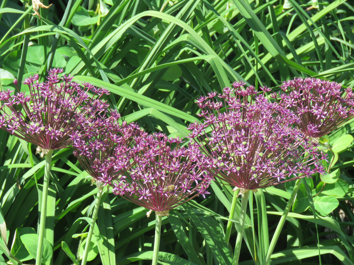 Прошлый сезон порадовал меня цветением нового лука по имени "Майами", который я урвала на распродаже и осенью судорожно искала, куда мне закопать корзину. Луки у меня ребята с выкрутасами, кто-то, вообще отказывается зимовать, как это сделал товарищ Шуберт, кто-то мучается и помирает за пару сезонов.. А этот нет, перезимовал, процвел в июле активным таким темно-фиолетовым цветом. Но при выкопке на просушку, показал, что гнить он все ж будет...хоть ты песком в той корзине усыпься. И сушить его надо... Ну что ж, посушим, раз такая вредина. Поэкспериментируем с местом, все равно ежегодно выкапываю. Посмотрим, где ему лучше живется. Лук "Майами"